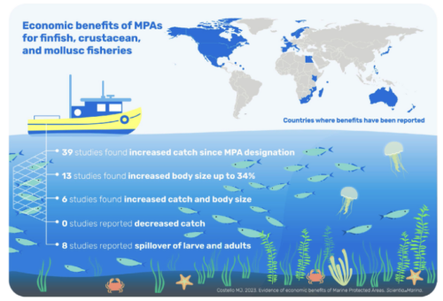 Figure 11. Summary of economic benefits of MPAs for fisheries, from a 2024 study of 81 publications about MPAs in 37 countries. Source: Costello, M.J., 2024. © 2024 Consejo Superior de Investigaciones Científicas (CSIC). Licensed under CC BY 4.0.